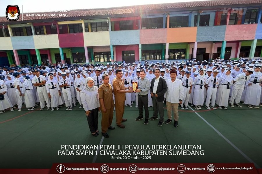 Komisi Pemilihan Umum (KPU) Kabupaten Sumedang menggelar kegiatan Pendidikan Pemilih Pemula Berkelanjutan di SMPN 1 Cimalaka, Senin (20/10/2025).