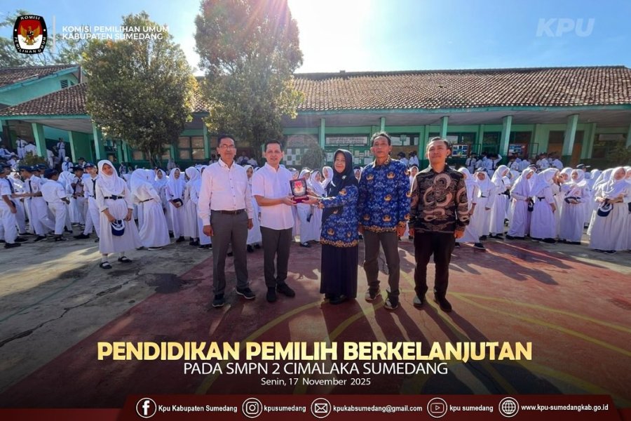 Komisi Pemilihan Umum (KPU) Kabupaten Sumedang melaksanakan kegiatan Pendidikan Pemilih Berkelanjutan di SMPN 2 Cimalaka, Senin (17/11/2025).