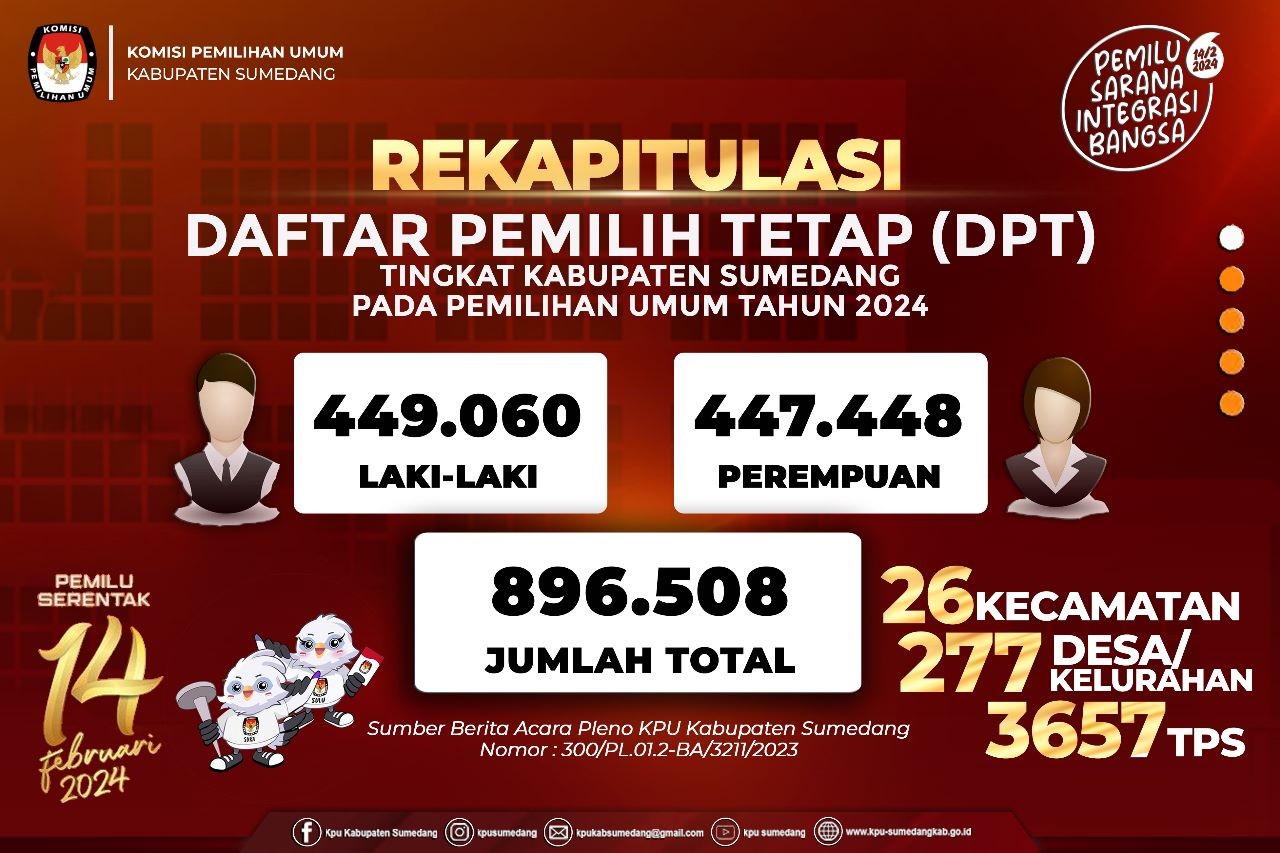 INFO GRAFIS DAFTAR PEMILIH TETAP (DPT) KABUPATEN SUMEDANG PADA PEMILU TAHUN 2024