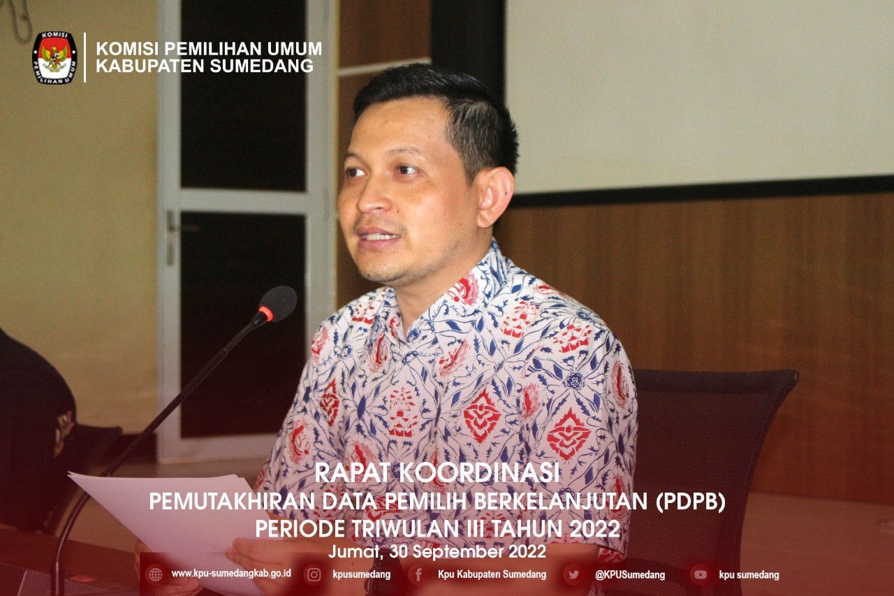 Berdasarkan ketentuan Peraturan Komisi Pemilihan Umum Nomor 6 Tahun 2021 tentang Pemutakhiran Data Pemilih Berkelanjutan, hasil rapat koordinasi yang dilakukan oleh KPU Kabupaten Sumedang menghasilkan hal sebagai berikut: