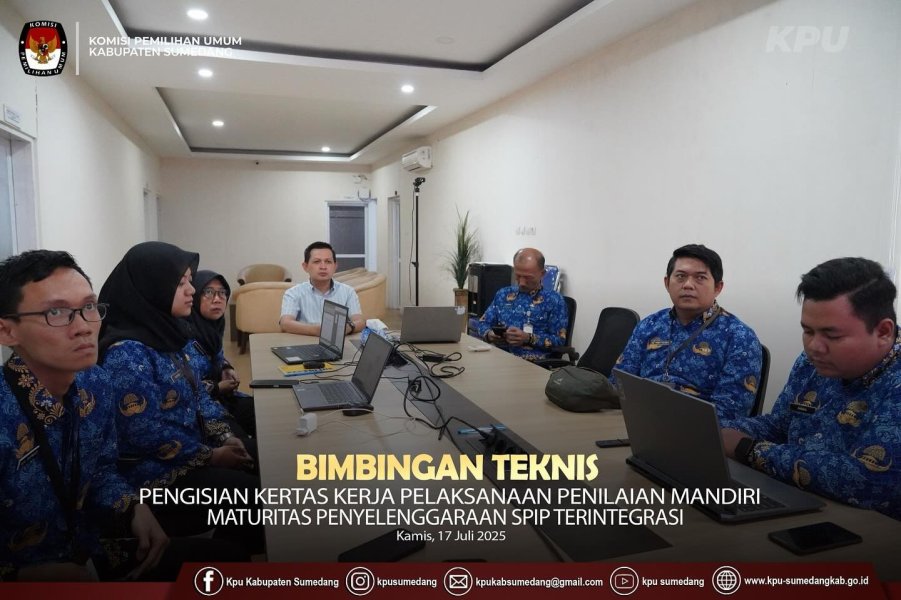 Sumedang – Komisi Pemilihan Umum (KPU) Kabupaten Sumedang mengikuti Zoom Meeting Bimbingan Teknis Pengisian Kertas Kerja Pelaksanaan Penilaian Mandiri Maturitas Penyelenggaraan SPIP Terintegrasi pada Kamis, 17 Juli 2025. Kegiatan ini diselenggarakan sebagai bagian dari upaya penguatan tata kelola dan peningkatan kualitas penyelenggaraan pemerintahan di lingkungan KPU. Bimbingan teknis ini bertujuan untuk memperdalam pemahaman peserta mengenai prosedur, prinsip, dan teknis pengisian kertas kerja Penilaian Mandiri Maturitas SPIP Terintegrasi. Melalui kegiatan ini, setiap unit kerja diharapkan mampu menyusun dokumen penilaian secara lebih tepat, akurat, dan sesuai pedoman yang berlaku. Selama pelaksanaan Zoom Meeting, peserta mendapatkan penjelasan mendalam serta contoh implementasi terkait penyusunan kertas kerja, mulai dari identifikasi unsur pengendalian, penilaian risiko, hingga penyusunan rencana tindak pengendalian. Selain itu, sesi diskusi interaktif memberikan ruang bagi peserta untuk mengajukan pertanyaan dan menyamakan persepsi mengenai aspek-aspek teknis yang dianggap krusial. Kegiatan ini menjadi langkah penting bagi KPU Kabupaten Sumedang dalam memastikan proses penilaian maturitas SPIP dapat berjalan dengan baik dan terukur. Dengan peningkatan kapasitas ini, KPU Sumedang menunjukkan komitmen terhadap penyelenggaraan pemerintahan yang transparan, akuntabel, dan berorientasi pada peningkatan kualitas layanan publik.